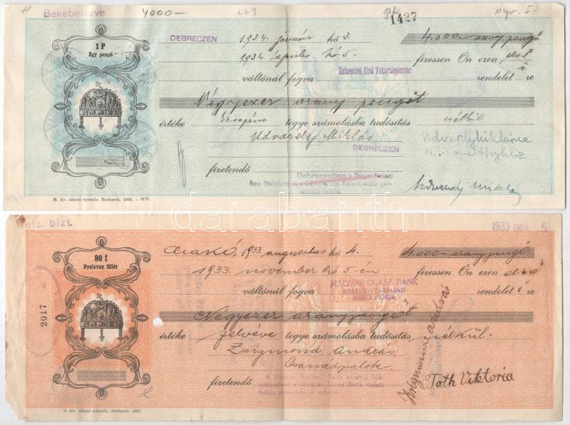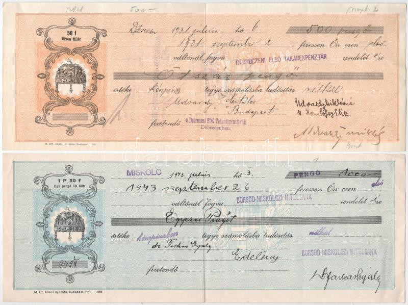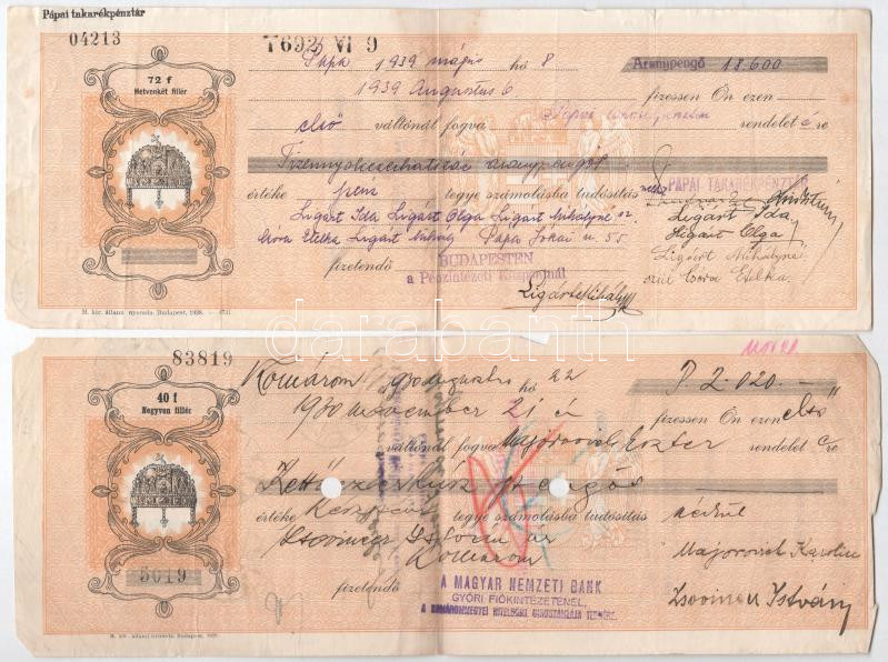 ~1929-1943. 14db-os váltó-tétel, kitöltve, bélyegzésekkel, több darab ...
