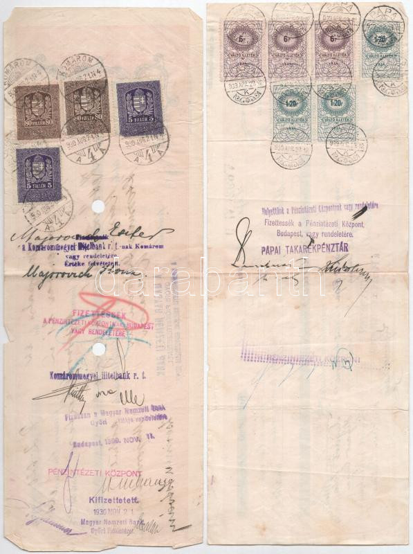 ~1929-1943. 14db-os váltó-tétel, kitöltve, bélyegzésekkel, több darab okmánybélyegekkel T:III
