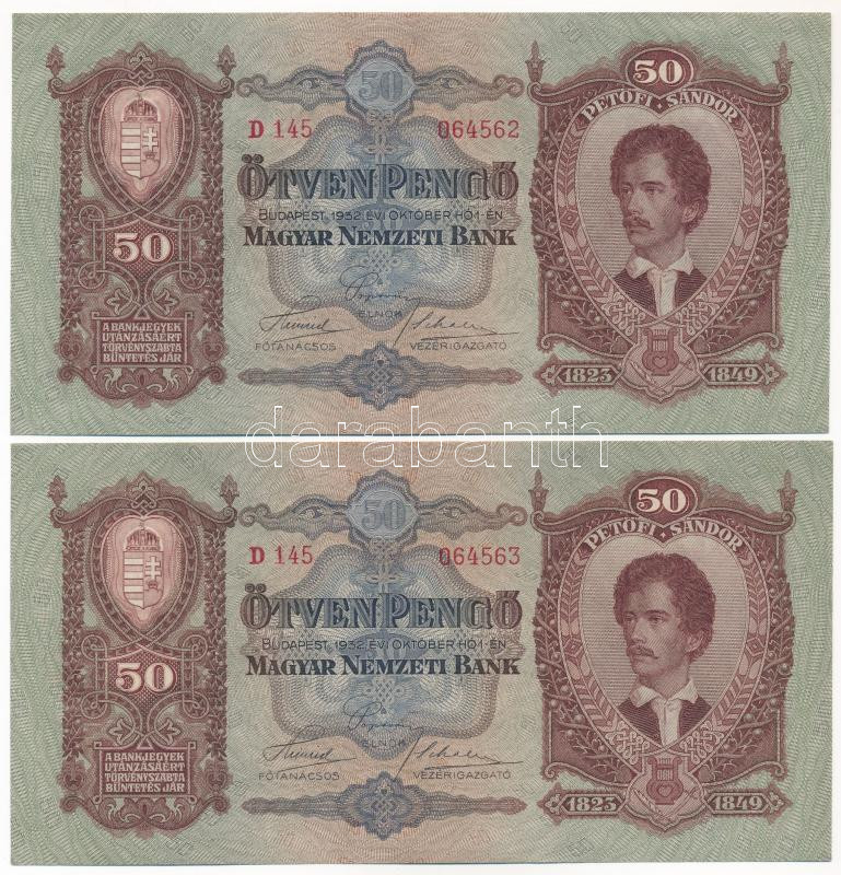 1932. 50P (2x) sorszámkövetők " D 145 064562 - D 145 064563" T:I-