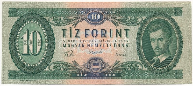 Hungary 1957. 10 Forint "A 614 055052" C:F fine paper