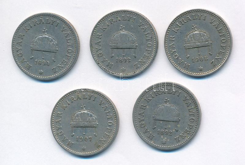 1892KB-1908KB 20f Ni (5xklf) benne a ritkább 1892-es évjárattal T:2-3 ...