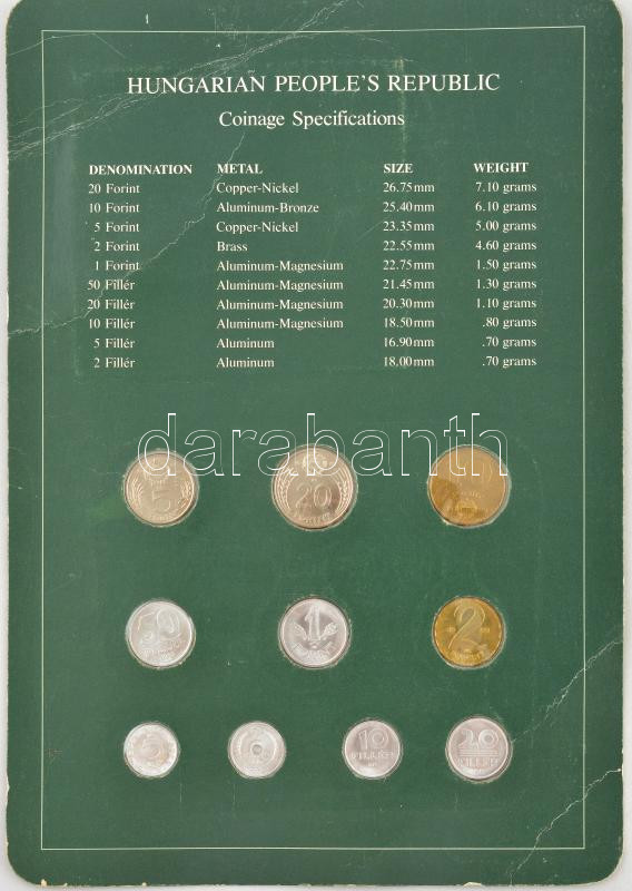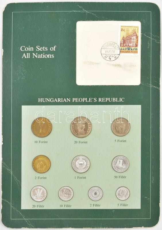1983-1984. 2f-20Ft (10xklf) "Coin Sets of All Nations" forgalmi összeállítás felbélyegzett kartonlapon, 2Ft-os "200 éves Budapesti Műszaki Egyetem" bélyeggel T:1,1- a karton több helyen gyűrött