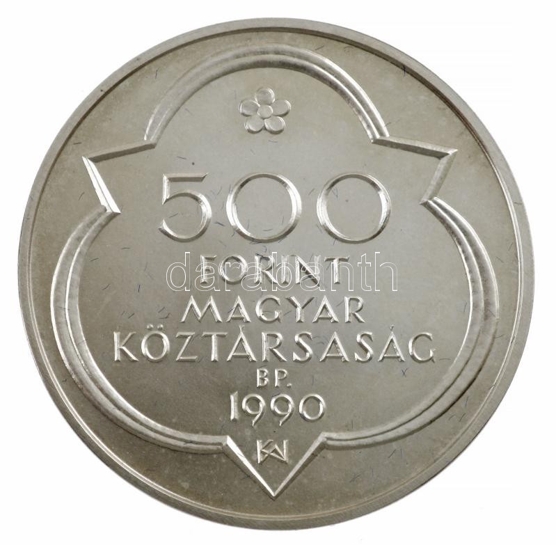 https://www.darabanth.com/en/428-Online-auction/428.0/Numismatics/Hungarian-coins-and-coins-with-Hungarian-mint-marks~3000008/1990-500Ft-Ag-Matyas-kiraly-Buda-serult-disztokban-TBU-patina-Adamo-EM114~II2743294