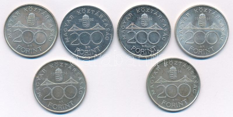 1992-1994. 200Ft "MNB" "Deák" (6db, 3xklf) T:1-2 p...