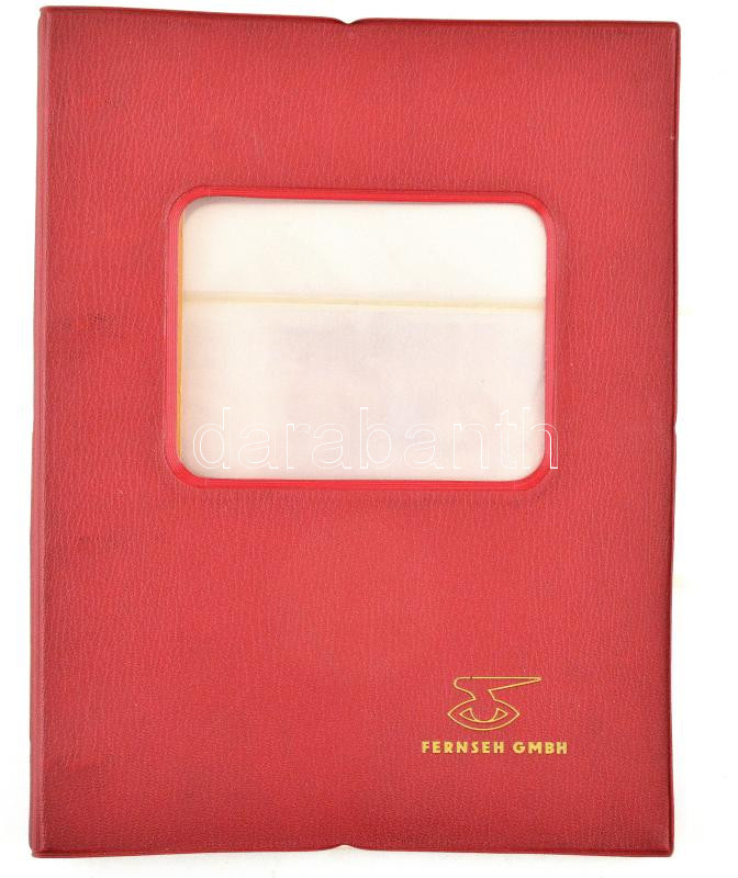 Piros, négygyűrűs "Fernseh GMBH" album 6db hármas osztású berakólappal. Használt, jó állapotban.
