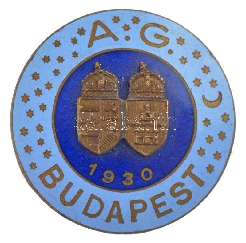 1930. "Budapest A.G." zománcozott bronz jelvény, hátlapon &q...
