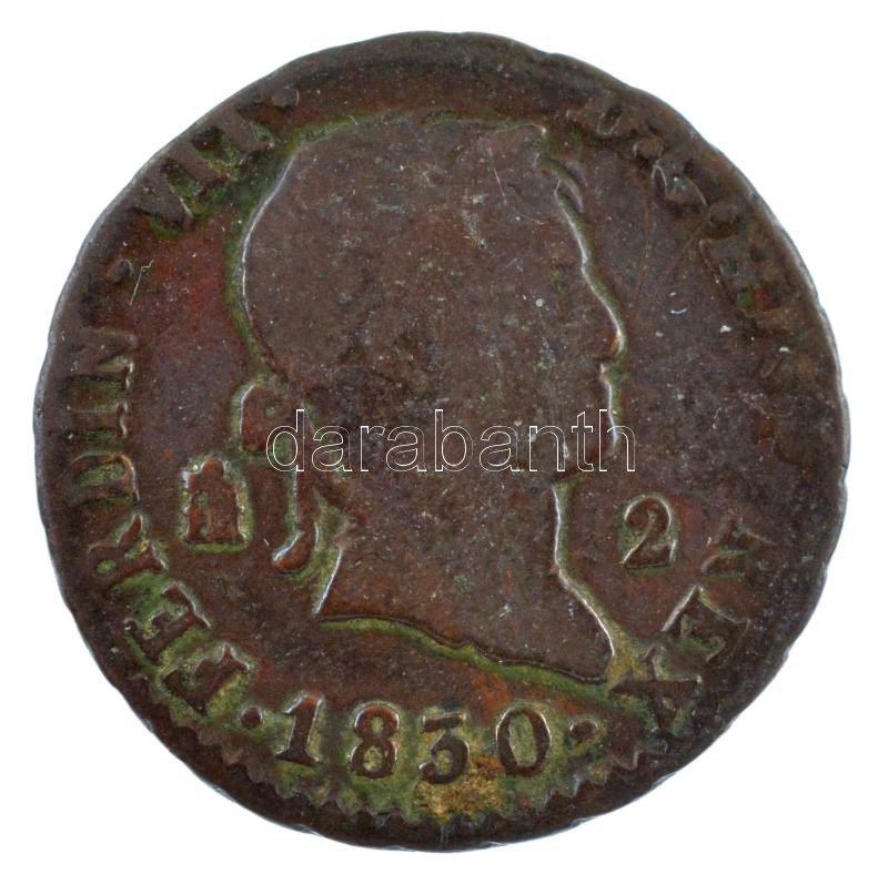 https://www.darabanth.com/en/428-Online-auction/428.0/Numismatics/Worldwide-silver-and-metal-coins~3000014/Spanyolorszag-1830-2m-Cu-VII-Ferdinand-T3-Spain-1830-2-Maravedis-Cu-Ferdinand-VII-CF-Kr~II2743074