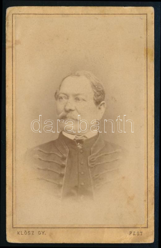 Description: cca 1860 Várady József (1800-1883) m. kir. kancelláriai tanácsos (1848-ban a Batthyány-kormány fiumei kormánybiztosa), keményhátú fotó Klösz György pesti műterméből, vizitkártya, kissé foltos, 10,5x6,5 cm