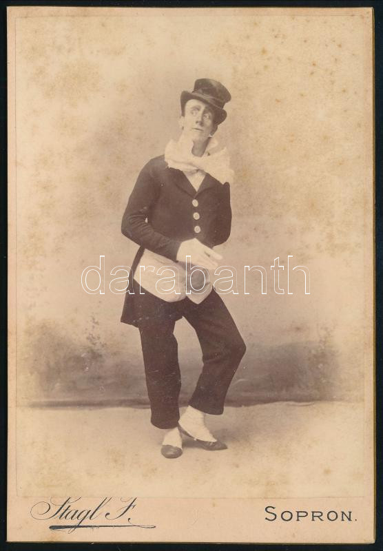 cca 1895 Bohóc portréja, keményhátú fotó Stagl soproni műterméből, hát... https://www.darabanth.com/en/428-Online-auction/428.0/Photography/Photo~500021/cca-1895-Bohoc-portreja-kemenyhatu-foto-Stagl-soproni-mutermebol-hatoldalan-korabeli-da~II2743923