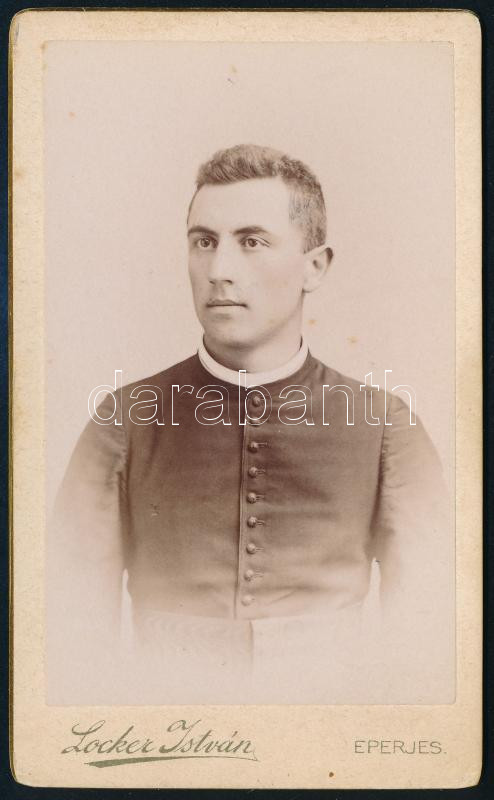cca 1900 Fiatal pap portréja, keményhátú fotó Locker István eperjesi m...