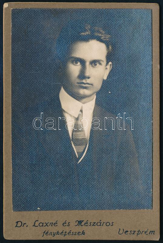 cca 1920 Férfiportré, keményhátú fotó Dr. Laxné és Mészáros veszprémi ...