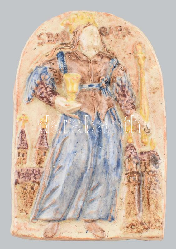 Szent Barbara Mázas kerámia falidísz. Jelzett. 17x11 cm