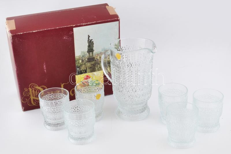 Bohémia vizes készlet, 6 személyes, jelzett, hibátlan, eredeti dobozban.