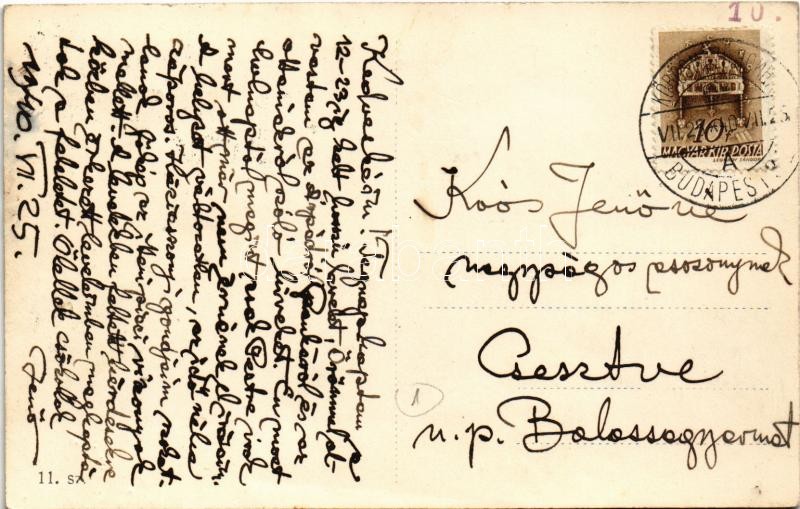 1940 Nagyszőlős, Nagyszőllős, Vynohradiv (Vinohragyiv), Sevljus, Sevlus; Római katolikus templom / church + "KŐRÖSMEZŐ-BUDAPEST" vasúti mozgóposta