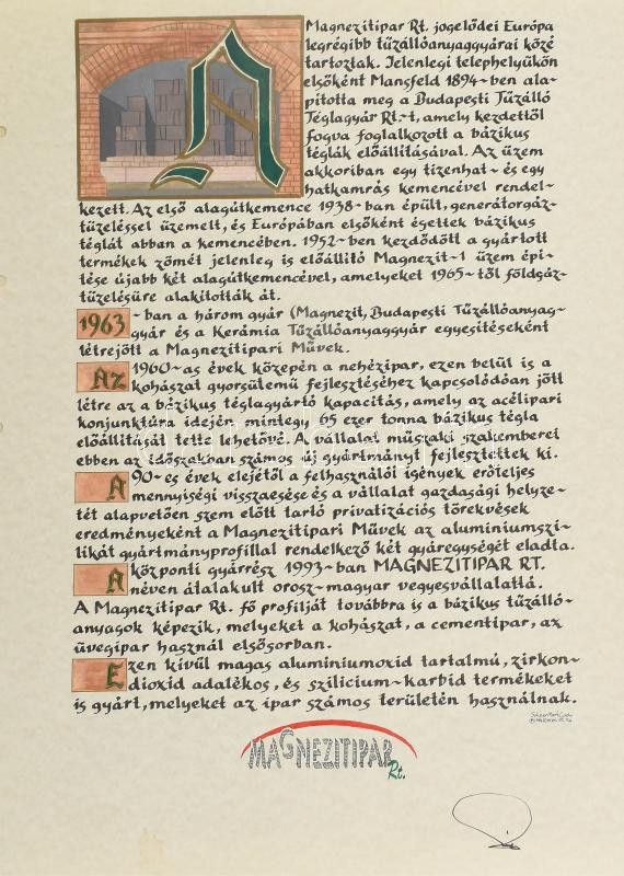 1994 Magnezitipar Rt., kézzel festett, cégismertető reklámterv, lap sz...