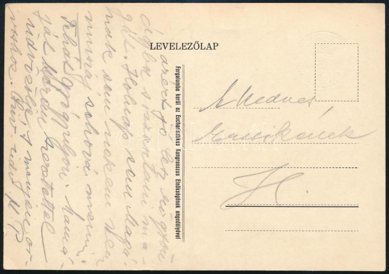1938 A Budapesti Eucharisztikus Kongresszus levelezőlapja