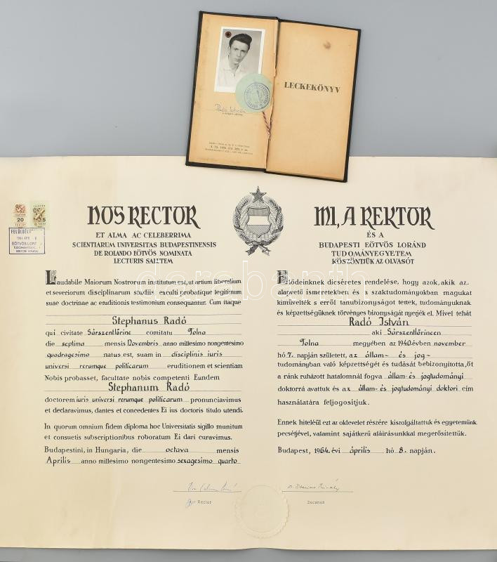 1964 ELTE jogi diploma és hozzá tartozó leckekönyv