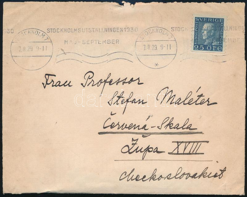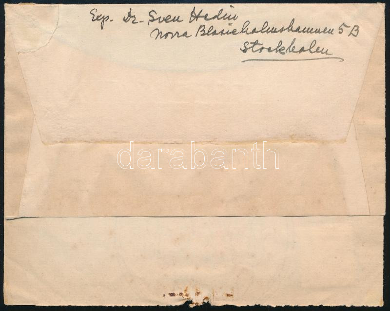 1929 Sven Hedin (1865-1952) svéd felfedező autográf megcímzett levélborítékja