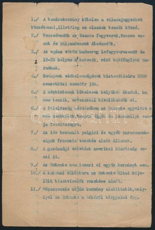 cca 1919 Tanácsköztársaság utáni gépelt röplap, szakadt