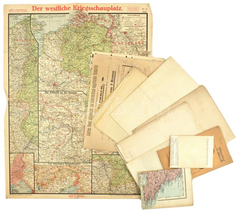 11 db vegyes régi térkép (Ausztrália, Európa, I. világháborús hadszínterek, Freytag & Berndt autótérkép, stb.), vegyes méretben és állapotban (közte sérültek) / Pre-1945 maps (Australia, Europe, WWI, route map, etc.), in mixed size and condition
