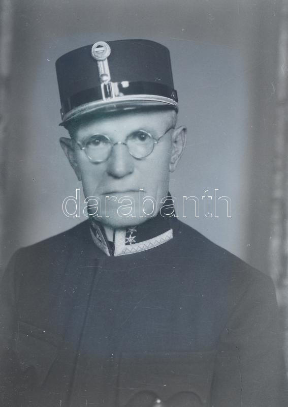cca 1920-40 katonákról vagy rendőrökről készült portrék, egyik több kitüntetéssel dekorált, 2 db üvegnegatív, 9x6,5 cm