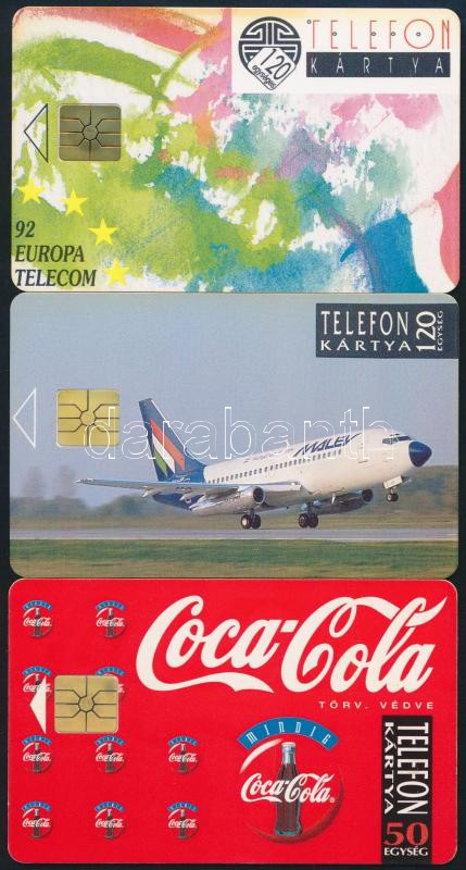 1992 MATÁV első "S" telefonkártya, 2 db + Coca Cola telefonkártya, jó állapotban