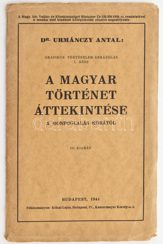 1944 Urmánczy Antal: A magyar történet áttekintése a honfoglalás korát... https://www.darabanth.com/en/429-Online-auction/429.0/Art-and-other-collectibles/Printed-Materials~1000002/1944-Urmanczy-Antal-A-magyar-tortenet-attekintese-a-honfoglalas-koratol-Bp-1944-Kokai-~II2757393