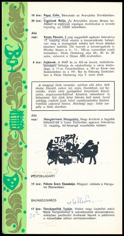 1971 VI. Hajdúsági Farsang '71 műsorfüzete. Debrecen, Szabadság-ny., megjelent 3000 példányban, aláhúzásokkal, bejelölésekkel.