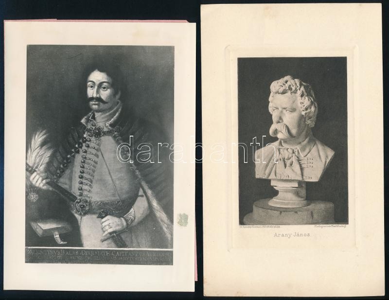 Arany János büsztje (Dr. Kemény Ferencz felvétele után), fotogravűr, 20x12 cm + Írók, költők portréi, 7 db modern nyomat fotópapíron, 18x13 cm