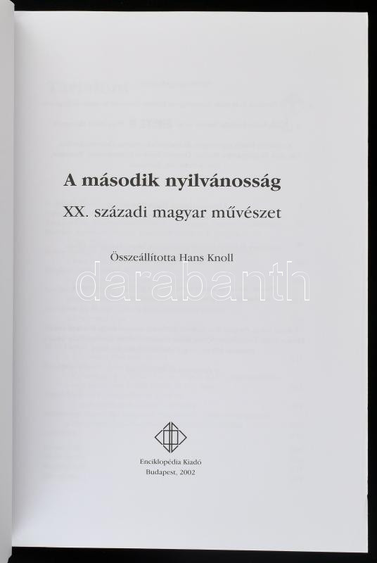 A második nyilvánosság. XX. századi magyar művészet. Összeáll.: Hans K... https://www.darabanth.com/en/429-Online-auction/429.0/Books/Books-Architecture-Art~1000011/A-masodik-nyilvanossag-XX-szazadi-magyar-muveszet-Osszeall-Hans-Knoll-Szerk-Jolsvai-~II2756408