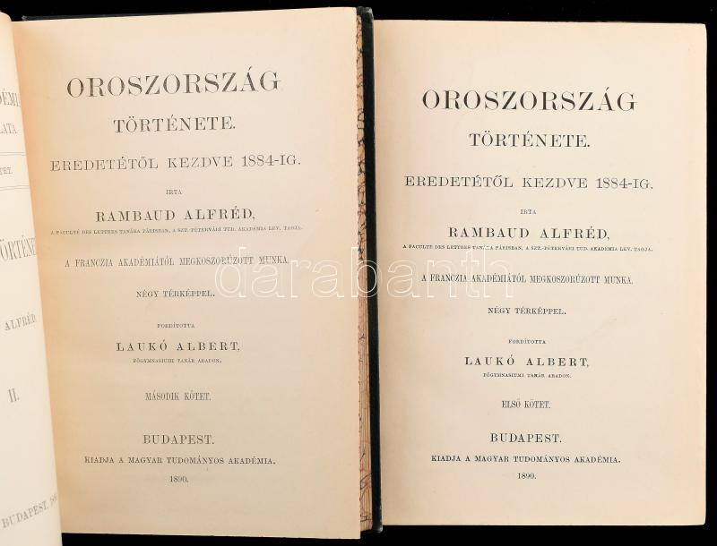 Alfred Rambaud: Oroszország története eredetétől kezdve 1884-ig. Fordí... https://www.darabanth.com/en/429-Online-auction/429.0/Books/Books-History~1000008/Alfred-Rambaud-Oroszorszag-tortenete-eredetetol-kezdve-1884-ig-Forditotta-Lauko-Albert-I-II~II2748191