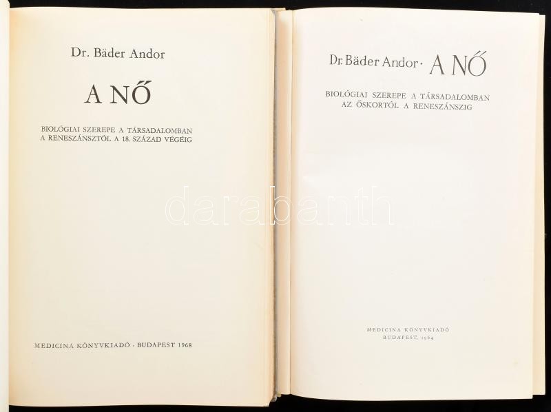 Bäder Andor: A nő. I.-II. köt. I. köt.: Biológiai szerepe a társadalom... https://www.darabanth.com/en/429-Online-auction/429.0/Books/Books-History~1000008/Bader-Andor-A-no-I-II-kot-I-kot-Biologiai-szerepe-a-tarsadalomban-az-oskortol-a-rene~II2725596