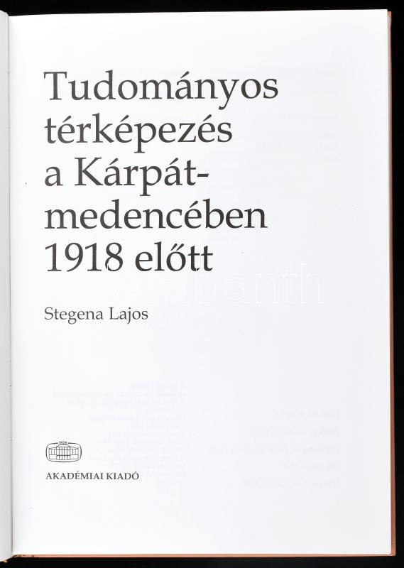 Stegna Lajos: Tudományos térképezés a Kárpát-medencében 1918 előtt. Bp.,1998,Akadémiai Kiadó. Kiadói kartonált papírkötés.