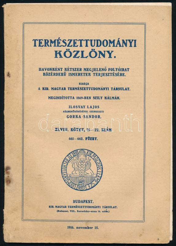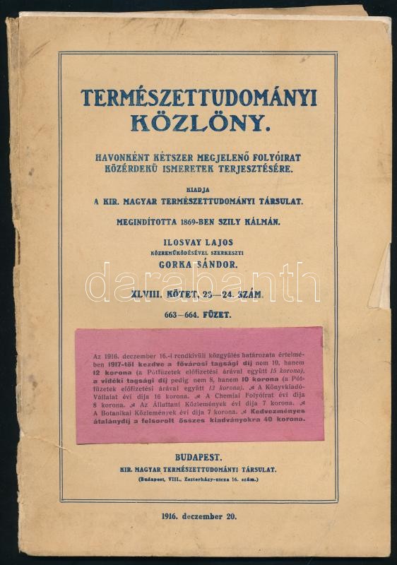 1916 Természettudományi Közlöny 2 száma, az egyik szakadozott.