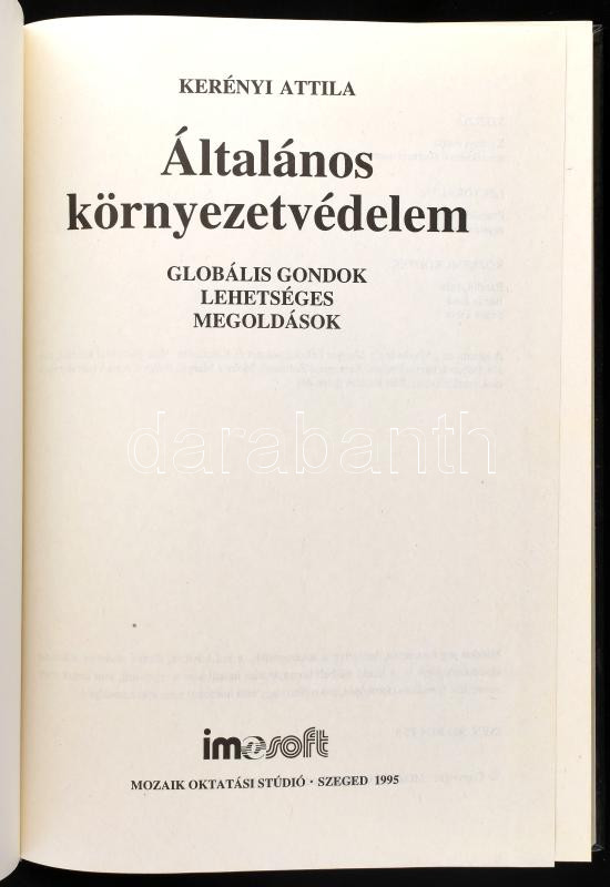 Kerényi Attila: Általános környezetvédelem. Globális gondok, lehetséges megoldások. Szeged, 1995, Mozaik Oktatási Stúdió. Kiadói kartonált papírkötés. + A szerző, Kerényi Attila geográfus, az MTA doktorának saját kezű levele, egy másik könyvének tiszteletpéldányával kapcsolatban, autográf aláírásával.