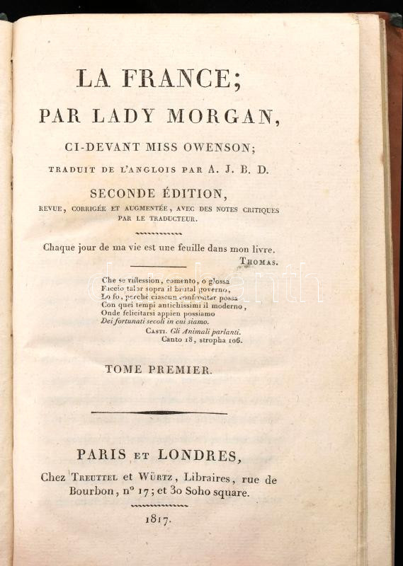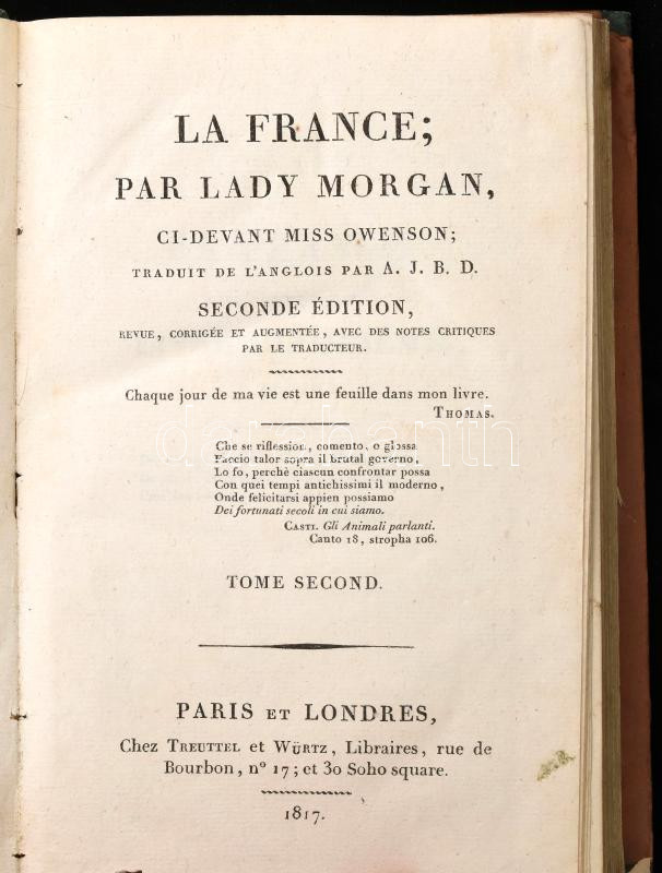https://www.darabanth.com/en/429-Online-auction/429.0/Books/Books-Other-languages~1000023/La-France-Par-Lady-Morgan-ci-devant-Miss-Owenson-Paris-1817-Chez-Treuttel-et-Wurtz-346-plus-478p~II2749777