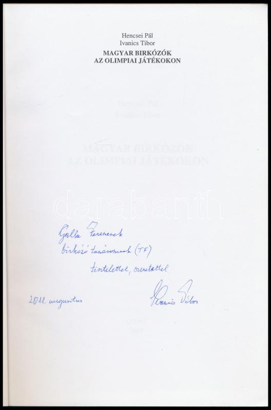 Hencsei Pál-Ivanics Tibor: Magyar birkózók az olimpiai játékokon. A szerző, Ivanics Tibor (1937-2014) által Dr. Galla Ferenc (1929-2018) orvos, egyetemi docens, judo és birkózó mesteredző részére DEDIKÁLT példány. [Sopron], 2003, Quint. Kiadói papírkötés.