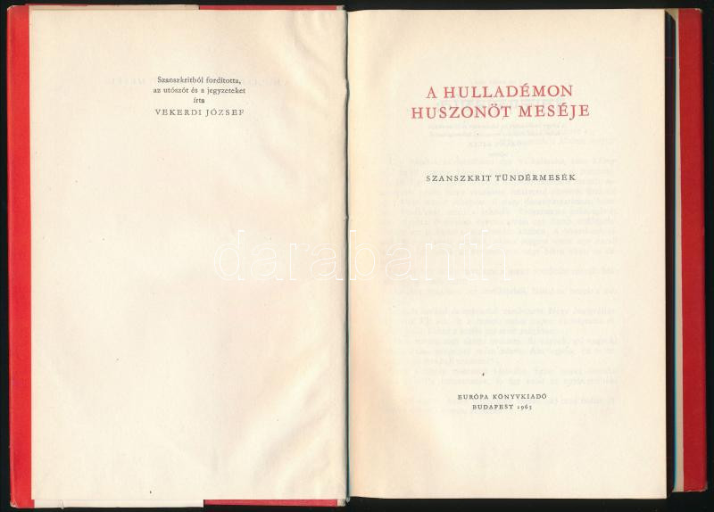A hulladémon huszonöt meséje. Szanszkrit tündérmesék. Ford., az utószót és a jegyzeteket Ãrta: Vekerdi József. Népek meséi sorozat. Bp., 1963, Európa. Kiadói félvászon-kötés, minimálisan sérült kiadói papÃr védÅ‘borÃtóban. Megjelent 5800 példányban.