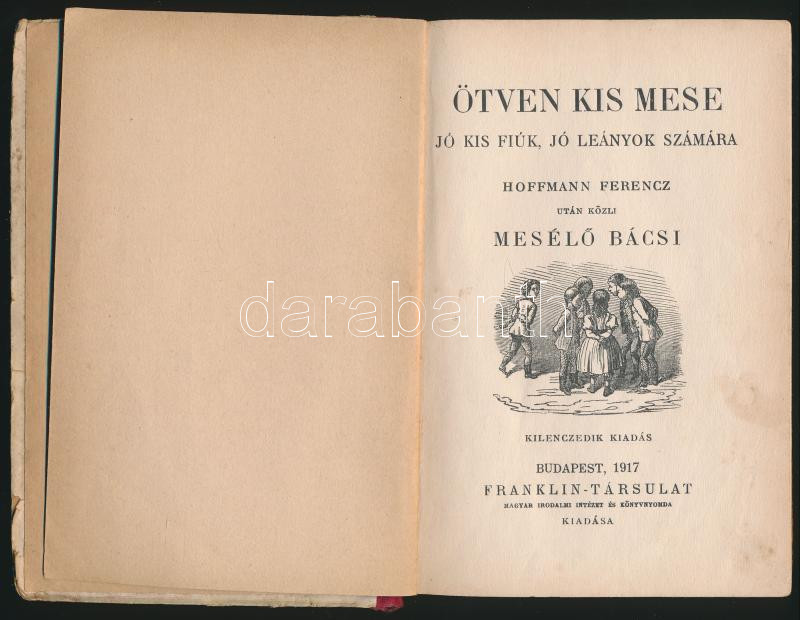 Hoffmann Ferenc: Ötven kis mese. Jó kis fiúk, jó leányok számára. - - Mesélő bácsi. Bp., 1917., Franklin, 132 p.+ 7 (színes képtáblák) t. Kilencedik kiadás. Kiadói félvászon-kötés, kopott borítóval, sérült gerinccel.