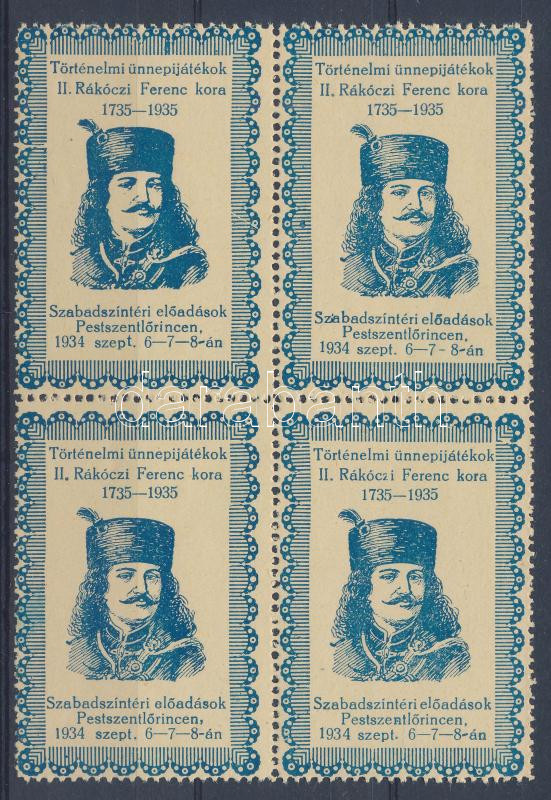1934 Történelmi ünnepijátékok II. Rákóczi Ferenc kora - Szabadtéri előadások Pestszentlőrincen levélzáró négyestömb