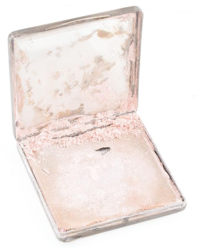 Ezüst (Ag) pudrié, jelzett, sérült, 6,5x6,5cm, bruttó: 79,4g