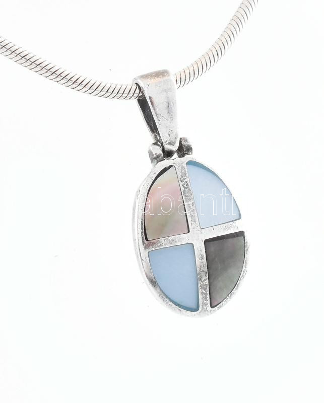Ezüst(Ag) kígyó nyaklánc, gyöngyházas medállal, jelzett, h: 45-50 cm, ...