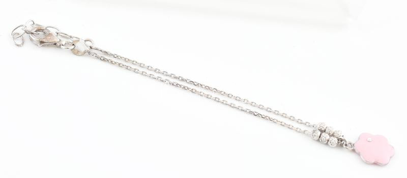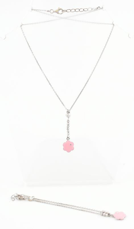 Ezüst(Ag) nyaklánc és karkötő rózsaszín dísszel, jelzett, h: 17 és 40 ...