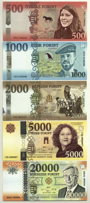 2018. "Soros pénz" 500Ft + 1000Ft + 2000Ft + 5000Ft + 20.000Ft fantázia bankjegy T:I-II az egyiken tintafolt, szakadás
