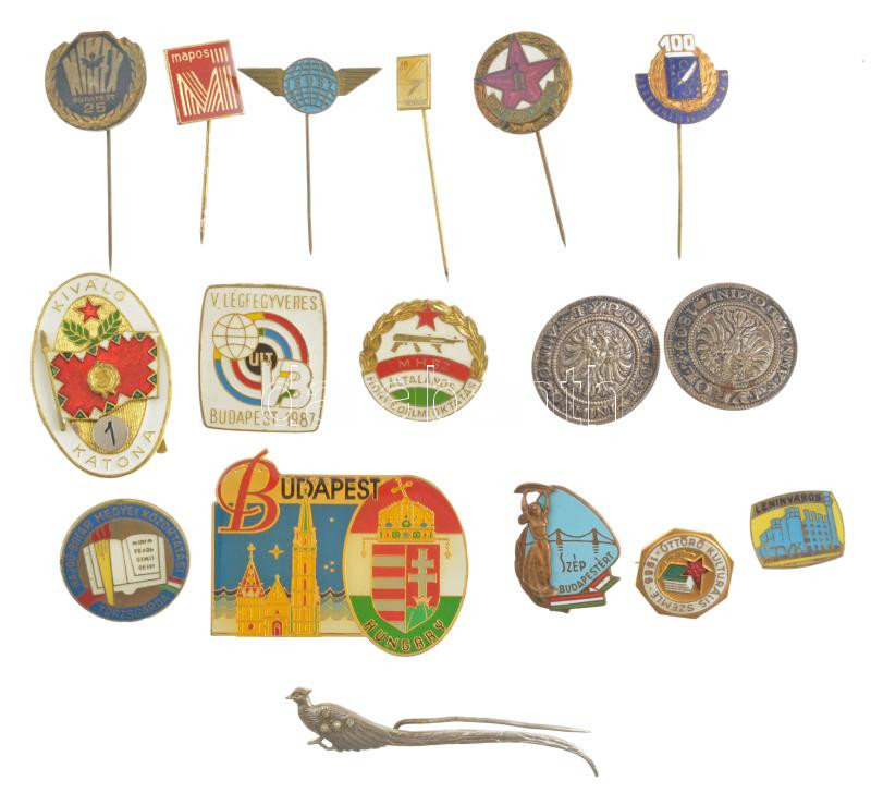 17db-os kitűző és gomblyukjelvény tétel, közte "Leninváros, IBUSZ, Szép Budapestért" stb kitűzők T:2 az egyikről letört a tű