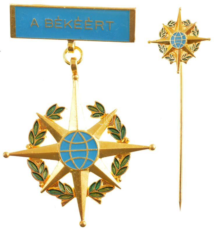 ~1980. "A Békéért" zománcozott fém kitüntetés eredeti, tokban miniatűrrel T:1-