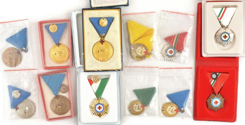 Vegyes 14db-os Vöröskereszt és "Kiváló Véradó", "Véradás szervezéséért" kitüntetés tétel, öt darab eredeti tokkal T:vegyes