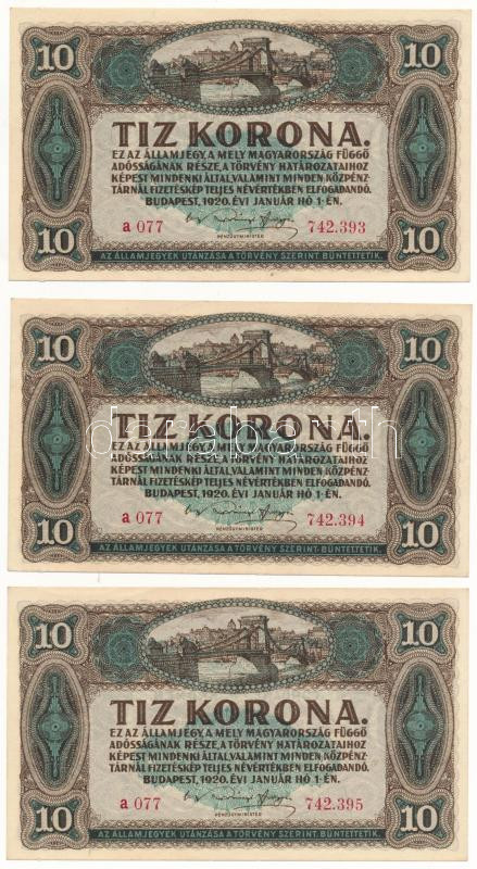 1920. 10K (3x) sorszámkövetők "a 077 742.393 - a 077 742.395"...
