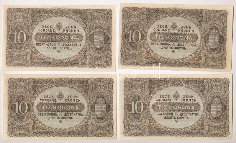 https://www.darabanth.com/en/429-Online-auction/429.0/Numismatics/Hungarian-Banknotes~2000009/1920-10K-4x-sorszamkovetok-a-077-742396-a-077-742399-TI-II-sarokhajlas-kis-anyaghia~II2747907