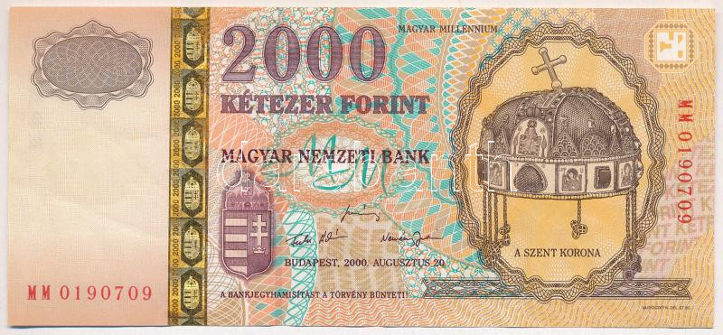 2000. 2000Ft "Millenium" "MM 0190709" T:III szép papír